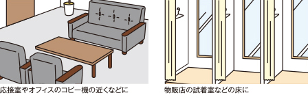 凹凸粘着シートでカーペットのパイルのすき間のゴミやホコリをしっかり取ります。多数の方がご利用される施設など、常に衛生面に気をつけている所におすすめです。